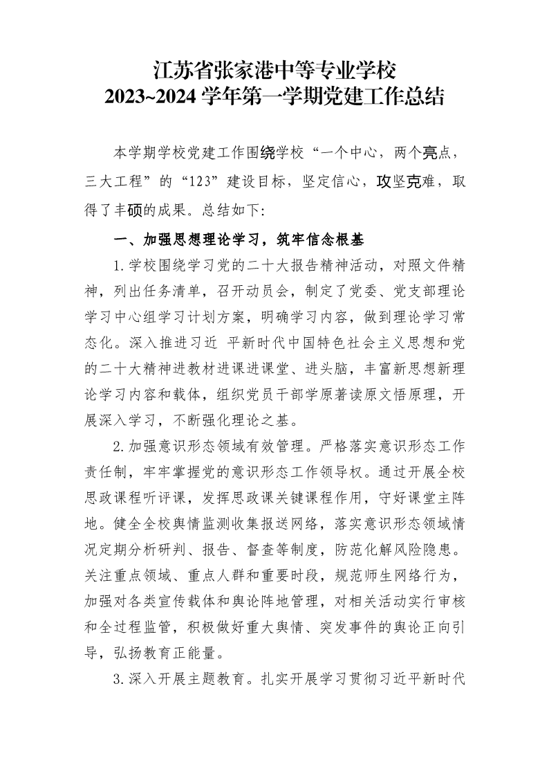 1-2-6 2023~2024学年第一学期党建工作总结