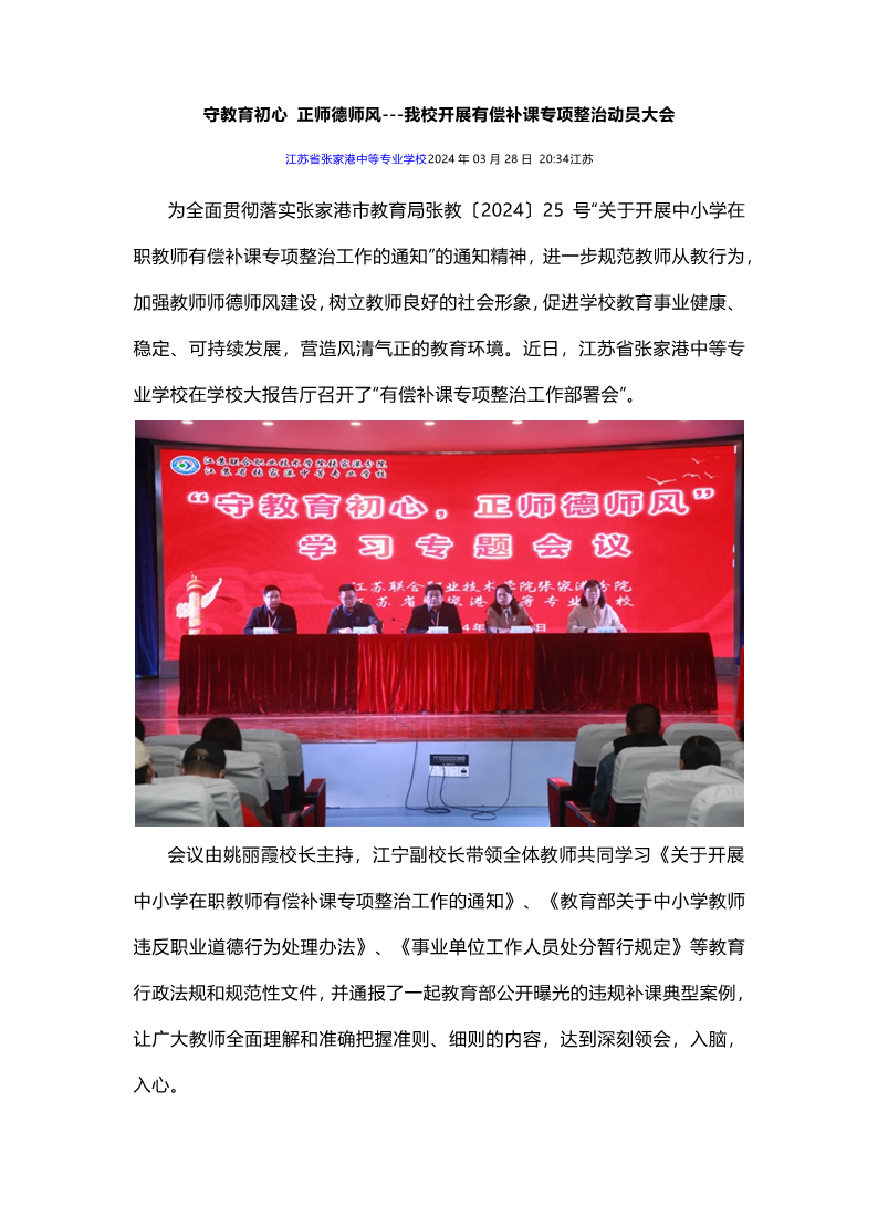 1-2-2守教育初心 正师德师风---我校开展有偿补课专项整治动员大会 来源: 发布时间:2024-11-08 15:47:55 浏览次数: 次 【字体:小 大】 终审:校长办公室 分享到: 【打印正文】