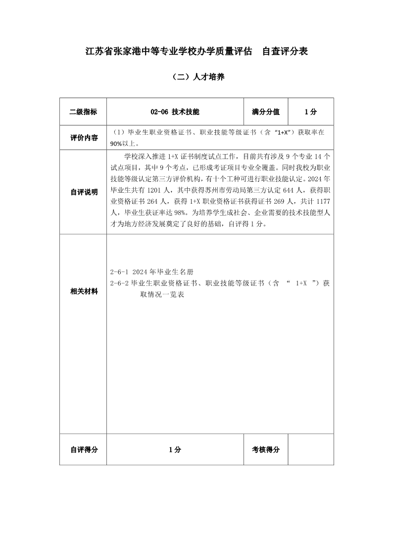 2-6 技术技能自查评分表