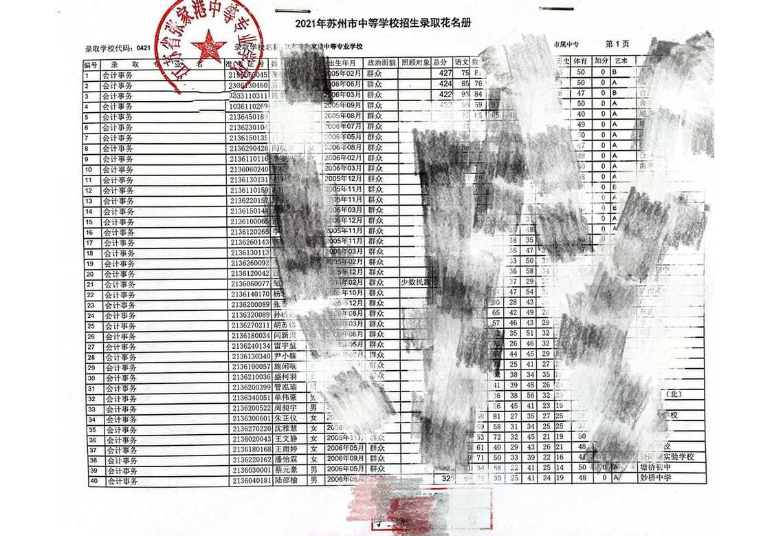 2-9-4 2021年苏州市中等学校招生录取花名册(详见纸质材料)