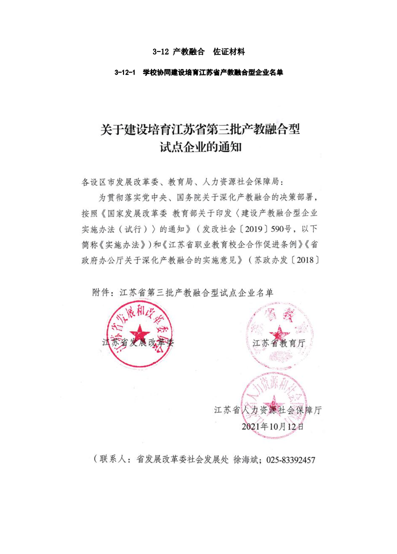 3-12-1 学校协同建设培育江苏省产教融合型企业