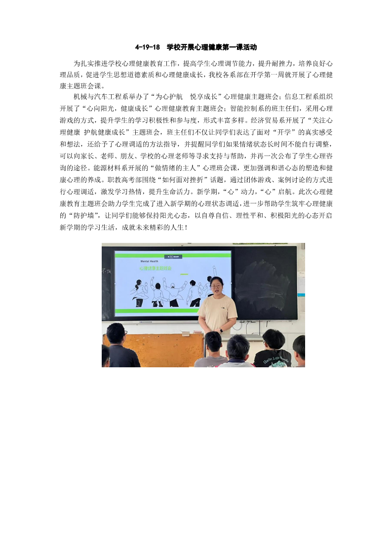 4-19-18 学校开展心理健康第一课活动
