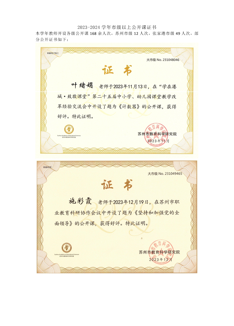 6-24-3学校2023-2024学年市级以上公开课证书